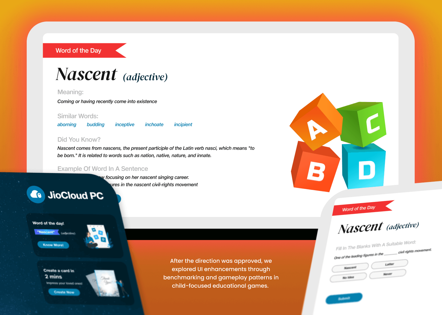 Currently working in Jio for brand engagements and internal tools. I hold Bachelors in Mechanical Engg. and MBA. With a background in product management i bring product thinking rigour along with design acuity to craft experiences that feel on point. Crafting journeys and experiences since 2023.
